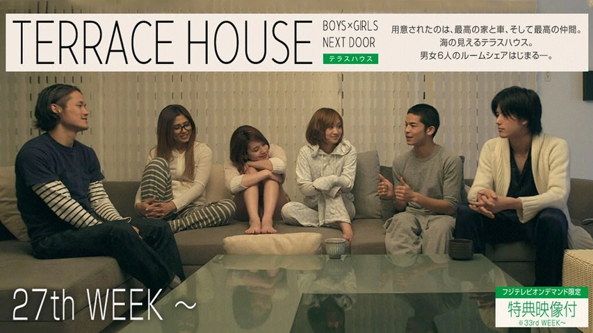 Dramas: Human Relationships Woven Through Communal Living TV Dramas & Reality Shows TERRACE HOUSE This reality show was the definitive catalyst for the Share House boom in modern Japan. As the famous narration goes, "Six strangers are pr... -