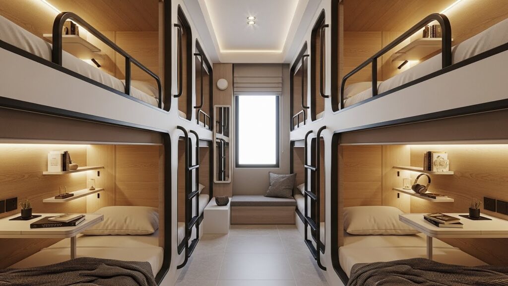 The days of just throwing bunk beds in a room are over. The latest dorms use capsule hotel technology to provide “hideaway” spaces fully partitioned with wood or resin panels. They come with USB ports, light switches, and security lockers at your bedside. Close the curtain, and you’re in your own world. This is a popular choice for those who want to save money without sacrificing personal space.